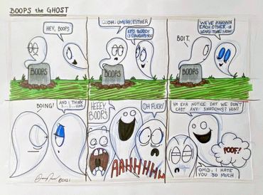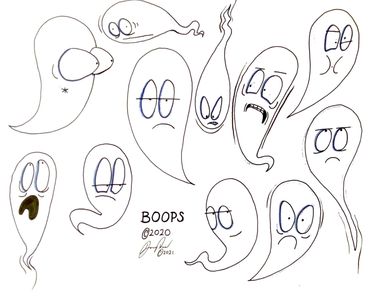 Boops the Ghost was created in 2020. It's about Boops and his ghostly pals and their afterlives in the cemetery. The show is currently slated to go into production. Here are examples of their character designs, pencil tests, and more.